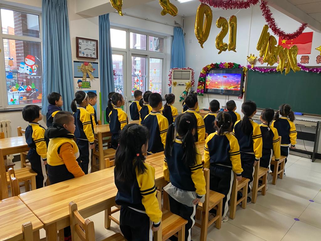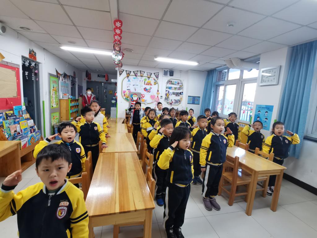 2021年1月4日上午,我园在教室举行“做好疫情防控,健康快乐迎新年”主题升旗仪式,办园点全体师生参加了升旗仪式。