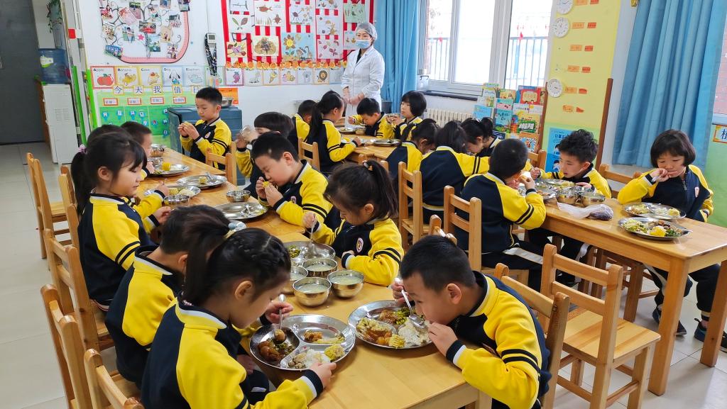 午餐时间到了。孩子们没有忘记上学期养成的好习惯,整齐排队取餐,积极践行节约粮食、不挑食、不浪费食物的号召,安安静静用餐,将”光盘行动“进行到底。餐后自己把餐盘放回原处。餐后自主洗手、漱口、室内散步、阅读、换好拖鞋后,安静午睡。