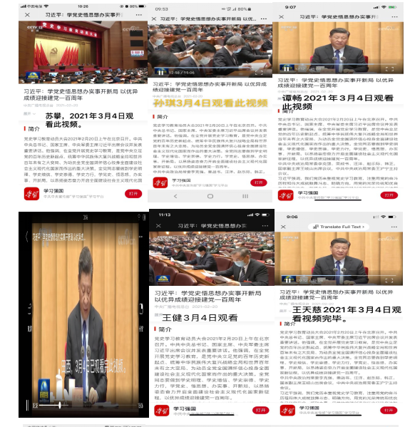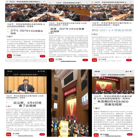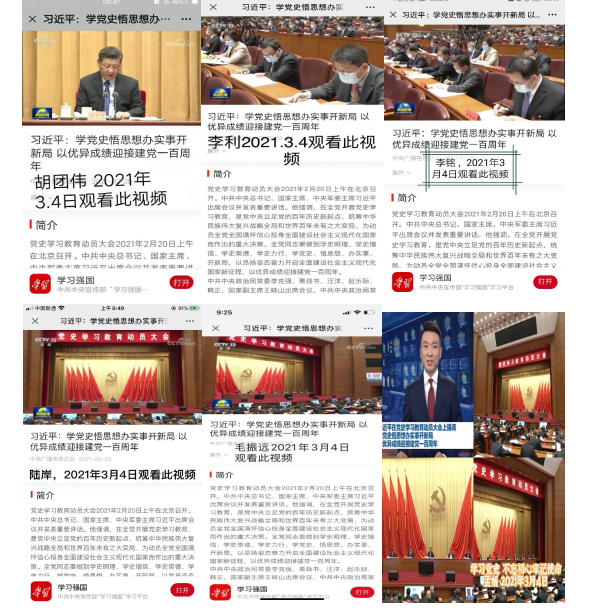 综合分工会组织会员27人在工会群里观看线上视频“习近平:学党史悟思想办实事开新局 以优异成绩迎接建党一百周年”。在观看视频后会员将视频截图并用手机P图添加文字发至群里,会员通过学习观看视频,了解党史重大事件、重要人物,增进了对党的感情。