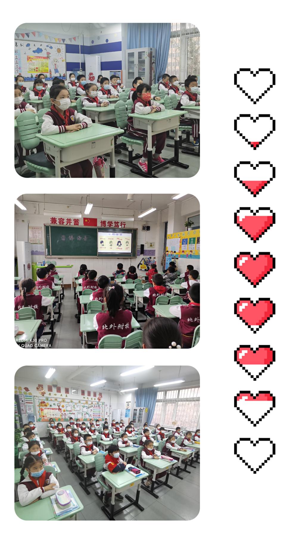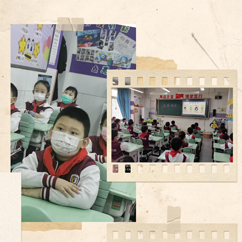 二年级老师在早读时间带领孩子们了解雷锋同志的光辉事迹,孩子们通过共读雷锋语录体会他的“钉子”精神和全心全意为人民服务的美好品质。不仅如此,在语文课《雷锋叔叔,你在哪里》的学习过程中,孩子们声情并茂地朗读诗歌,更加深刻地体会到雷锋精神的可贵,从而激励自己向雷锋叔叔学习,做一个新时代的好学生。