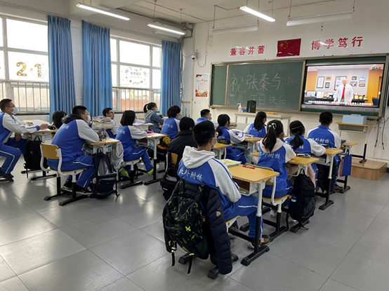 同学们正在认真地观看视频