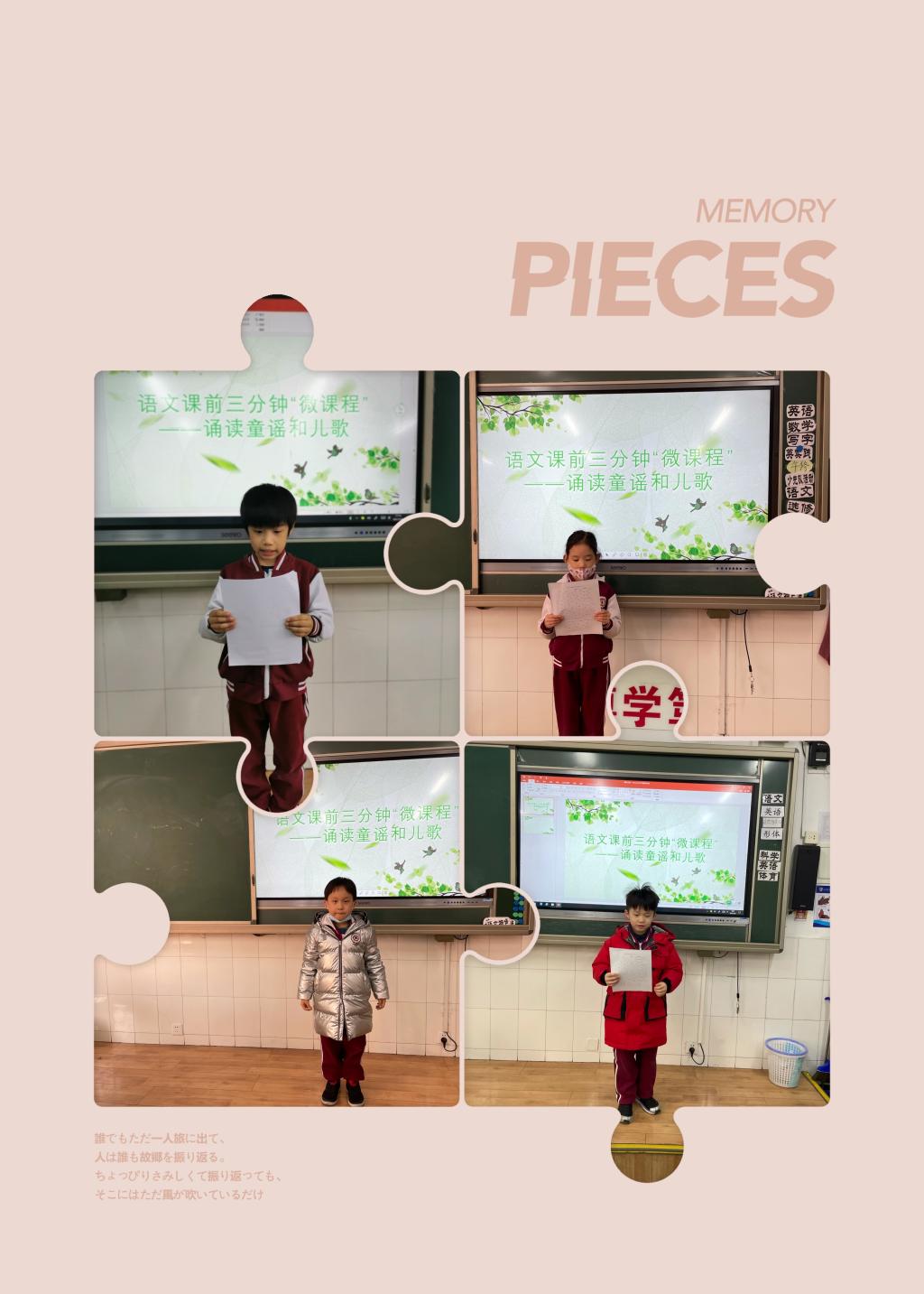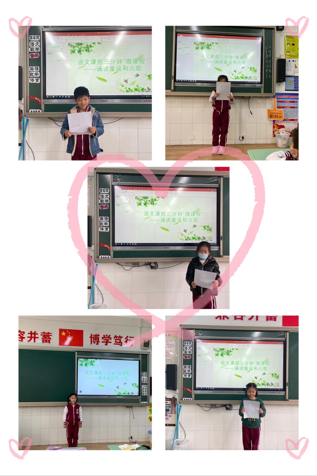 本次活动将传统文化与口语表达结合起来,一年级课前三分钟展示内容为儿歌童谣诵读,孩子们在朗朗上口的童谣儿歌中,获得展现自我的自信,提升朗读能力。