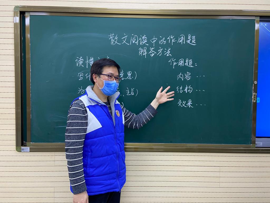 他是高中语文教研组长。他认为教学不仅仅是提升自己的水平,还要提升语文组全体教师的整体水平。他组织全组教师申报并完成三个海淀区“十三五”教育规划课题,还积极带领全组教师利用业余时间编写校本课程。2019年5月他代表学校参加海淀区校本研修示范课的展示活动,获得专家及听课教师的好评。