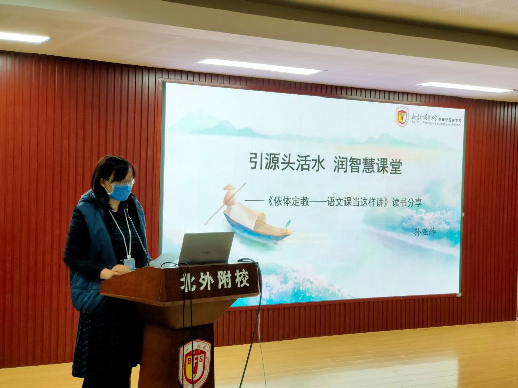 首先,五位教师和大家分享了寒假期间读书的收获和教学的感悟。语文教师孙亚萍以“引源头活水,润智慧课堂”为题,分享了《依体定教——语文课当这样讲》这本书的读后感。她简要讲述了这本书的内容概要,并介绍了自己在散文教学方面的收获。