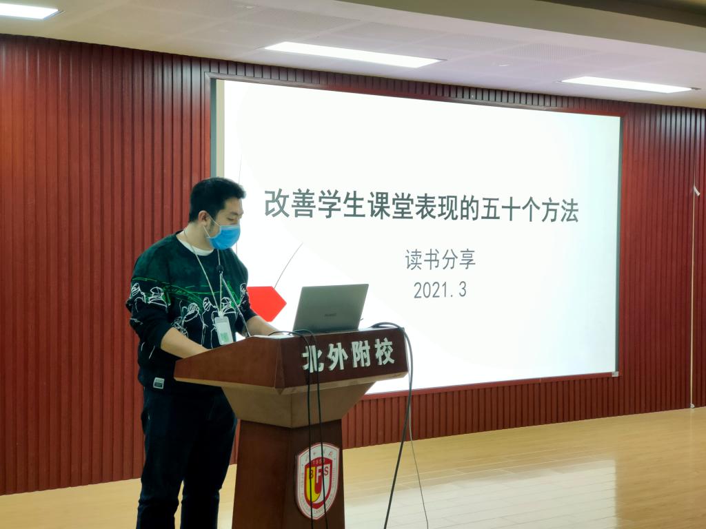 最后一位分享的是德语教师茹意,他阅读的书籍是《改善学生课堂表现的五十个方法》。作为一名入职不久的新教师,茹意坦言此书让他受益匪浅,解答了许多他在课堂管理方面的疑惑。在众多方法之中,他认为变被动为主动、保持乐观、注重眼神交流、充实课堂是最为关键的。