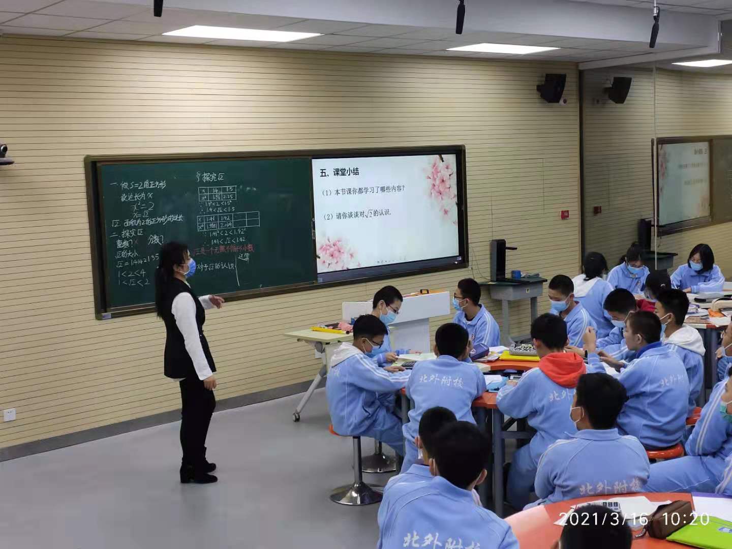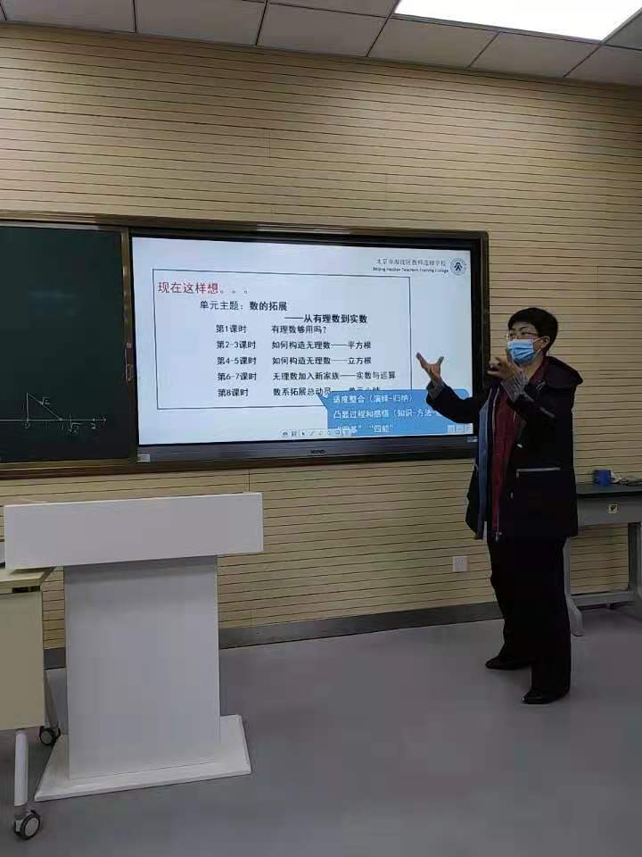 2021年3月16日上午,海淀区教研员刘忠新老师来我校指导初中数学教学工作,我校副校长于苒,副校长、初中校长杨磊以及初中数学、地理、生物、培训部的老师们参加了此次活动。刘忠新老师深入课堂,听取了初一年级田雪老师的课《探究根号2》。