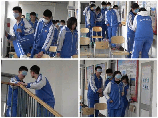 本周主题班会公开课展示的班级是高二(5)班,班主任钱老师以《信任》为班会主题在教室和走廊展开了活动。活动开始,钱老师先向同学们介绍活动规则:两人一组,自愿组合,一人蒙眼扮盲人,一人引导,蒙上眼睛的同学,原地转三圈,暂时失去方向感,然后在引导者的搀扶或者语言引导下(只能二选一),沿着既定线路,穿过障碍物,再次回到教室。然后互换角色,再来一遍。介绍好规则,在钱老师的指导下,各组同学安静有序的走出教室开始行动。有的小组选择语言引导,有的选择搀扶,有的根据“路况”更换引导方式。
