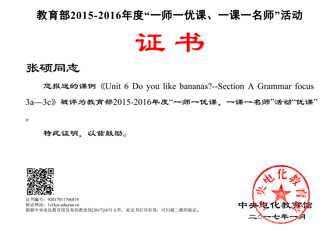 张硕老师对课本进行深入细致的阅读、研究,注重将教学理论与实际课堂相联系。同时关注学生的个体差异,因材施教,使不同层次学生的潜能得到最大程度的发挥, 努力构建民主、合作、探究的学习模式,创设问题解决的情境,启发学生创新思维和评判性思维,引导学生自主探索独立思考,用课堂所学习的语言知识,真实地解决生活中息息相关的问题。多次执教区、校级公开课,其中 2017年1月获得教育部“一师一优课”部级优课。