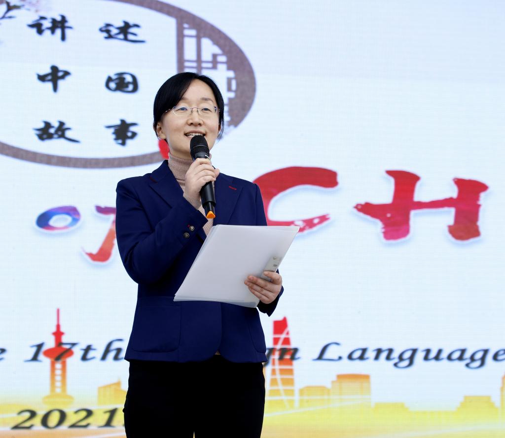 升旗仪式后,王静为外语节活动致开幕辞。她在讲话中为同学们解读了本届外语节的主题:“The Legend of China——讲述中国故事”。她指出每年的外语节是我校文化活动的重要组成部分,也是展示师生外语风采与魅力的一个大舞台。今年的外语节活动内容将围绕讲述中国故事这一主题,通过开展形式多样的课内外各种外语类活动挖掘和传播中国以及世界各民族的优秀传统文化和故事。王静号召全体中学生作为时代新人,作为实现国家百年奋斗目标的主力军,要讲好中国故事,传播好中国声音,向世界展现真实、立体、全面的中国,提高国家文化软实力和中华文化影响力,希望同学们能够积极参与本届外语节各项活动,在外语学习和阅读中品味经典的魅力。