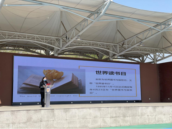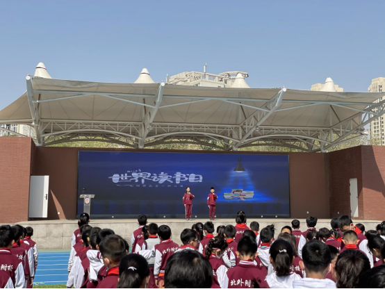 人间四月天,读书正当时。4月23日是第26个世界读书日,为了激发我校学生的阅读兴趣,引导学生从“阅读”走向“悦读”,享受读书和写作的乐趣,培养良好的阅读习惯,4月19日上午,我校小学在操场举行“享受阅读乐趣,走进人类文明”第8周主题升旗仪式暨第一届校园读书节开幕式。北京外研书店有限公司总经理付帅,外研书店店长李珊出席此次活动。