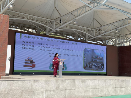 “海淀区红领巾读书小状元”邹欣怡、于知微向大家分享了他们的读书故事。两位同学都表示,读书带给他们的不仅仅是知识的丰富、视野的开阔,还有精神的富足。此外还向大家分享了她们选择书籍的方法,以及如何运用有效的阅读方法养成良好阅读习惯。她们激励同学们要像她们一样,热爱阅读,感受阅读的魅力,通过读书,链接历史,走进人类文明,感知大千世界。