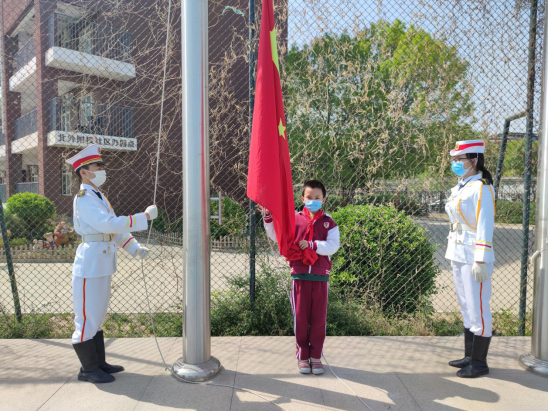 全体少先队员面向鲜艳的五星红旗,齐敬队礼,高唱国歌。今天的红领巾升旗手是来自四年级8班的校园尊重之星余思成。他是一个乐于助人、积极上进、懂得尊重的少年。他尊重自己,主动要求自己成为一名优秀的小学生,自我激励,善于发现努力的方向;他尊重老师,礼貌问好、真诚恭敬,获得老师们的一致赞扬;他尊重同伴,态度真诚,主动帮助,在班里有着极好的人缘;他尊重长辈、尊重家人,作为小小男子汉,主动分担家务活,做自己力所能及的事儿;在校外,他同样尊重他人。他用自身行动践行“尊重”二字。