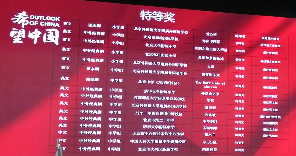 “希望中国”双语文化艺术节活动自2010年开展以来吸引了全国二十多个省市千余所学校和单位的优秀作品和选手,遵循“中国文化,世界表达”、“向世界讲好中国故事”的教育主题,旨在进一步增强学生中国文化精神的主题意识,扩大中国文化的世界影响。此次北京赛区共有200多部作品参赛,有60余部作品入围决选展演,分为课本剧、中外经典剧和原创剧三个类别,参加比赛的有清华附中、101中学、北京中学、陈经纶中学、朝阳清华附中国际学校、北师大附中等各区知名学校。担任本次评委的有教育部《义务教育英语课程标准》修订组核心成员、课程教材研究所研究员、希望中国青少年英语教育戏剧研究院院长李静纯老师、青少年英语教育戏剧研究院执行院长郝建平、研究院副院长娄云、北京科技大学外籍专家James和具有多年英文戏剧和英国文学教学经验的英国驻华大使馆文化工作者Chris等十一位专家。同时,担任本次艺术节评审委员会主任的娄云老师指出,相较往年,第十二届的剧目无论是从剧目编排、语言质量还是从演员表演和整体呈现效果上都有很大提升。