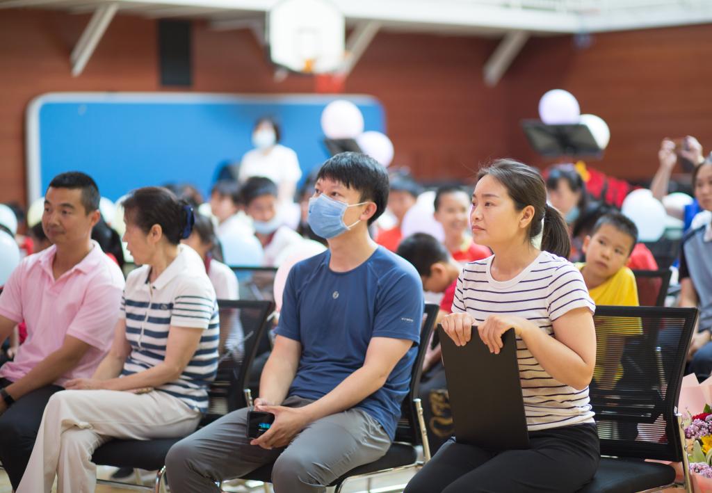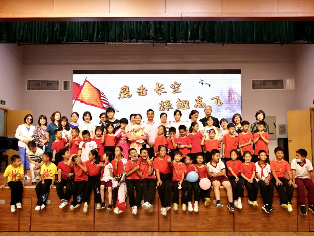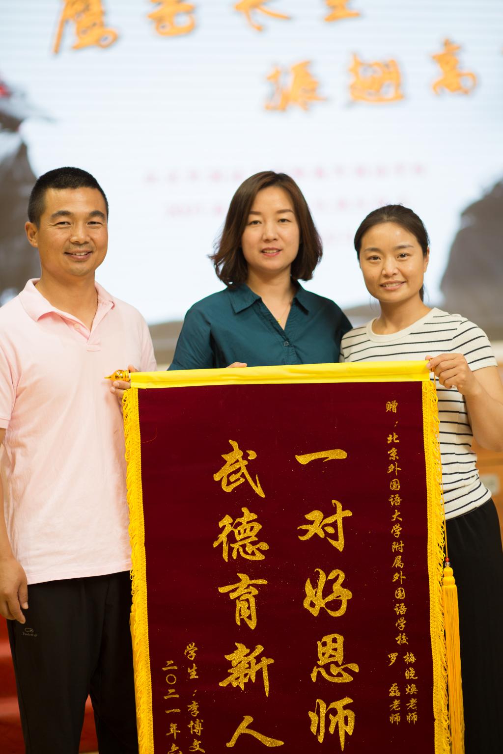 优秀的队伍、优质的队员以及优异的成绩都离不开家长们的支持和配合,退队家长代表李博文妈妈、苑芳菲妈妈也依次送来寄语,殷殷真情,细细叮嘱,让很多孩子红了眼眶。草木知春不久归,百般红紫斗芳菲。随后,退队队员李博文一家为梅老师和罗老师送来锦旗,对两位老师为孩子们的辛勤付出表示诚挚的感谢。接下来的环节是由刘教授和孙校长为退队队员颁发“鹏鶱少年”、“最佳配合家庭”证书,并与队员和家长合影留念。