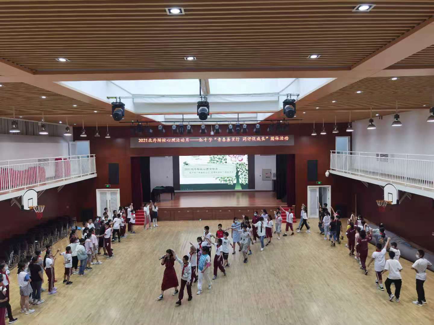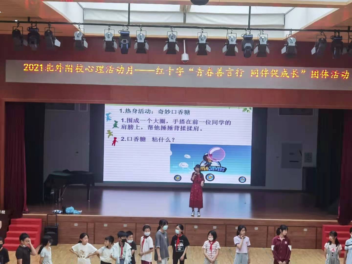 本次健康月活动涉及“关爱自我 与‘心’同行”5.25主题升旗仪式、“学生心理健康状态的识别与干预”教师心理讲座、“聆听音乐 感受美好”教师音乐舒压放松工作坊3场、小学低/中/高段家庭教育系列讲座3场、“青春善言行同伴促成长”主题大型人际互动活动、“游戏互动与减压”放松沙龙、 “曼陀罗绘画放松”主题活动等系列活动。