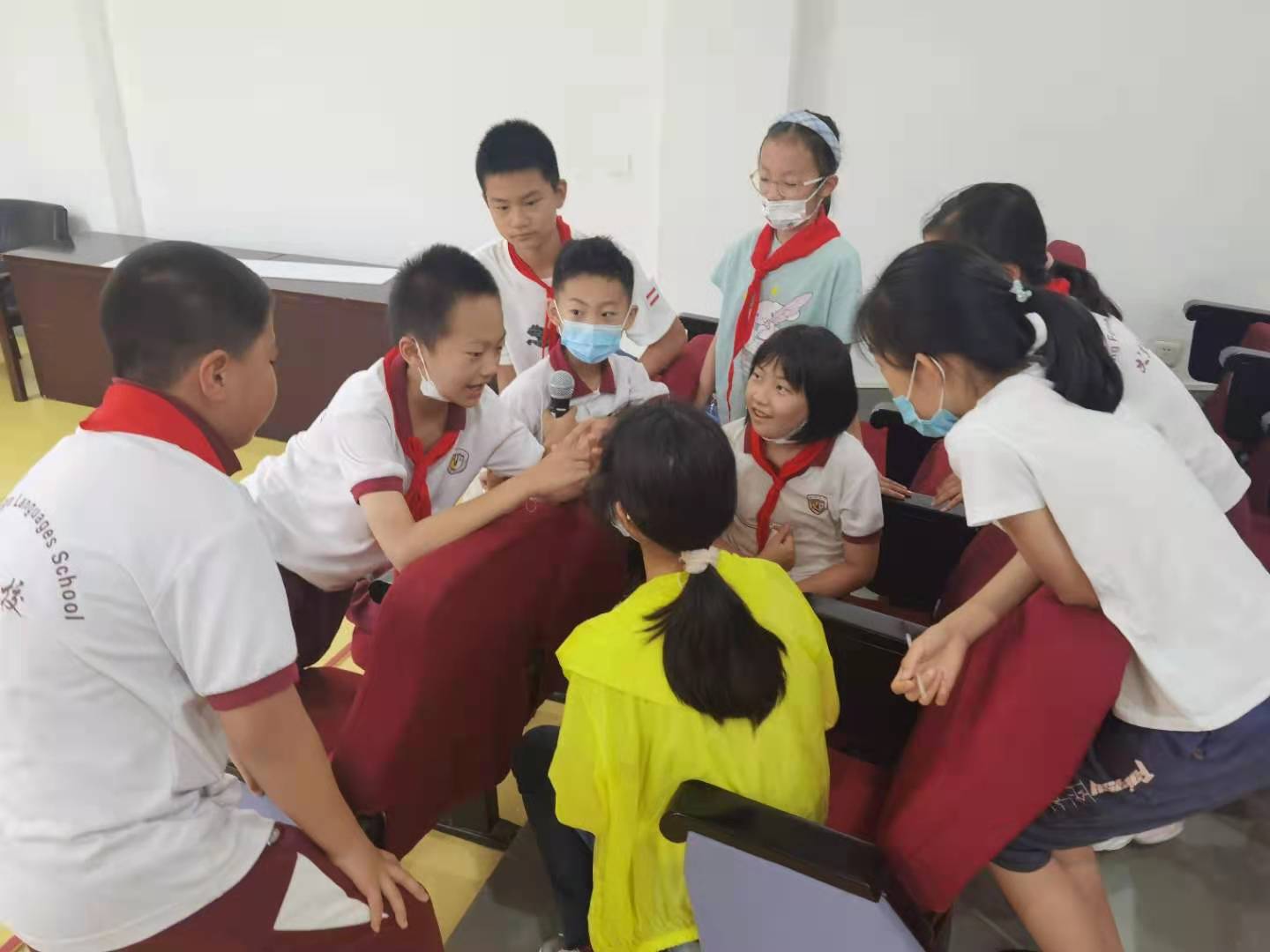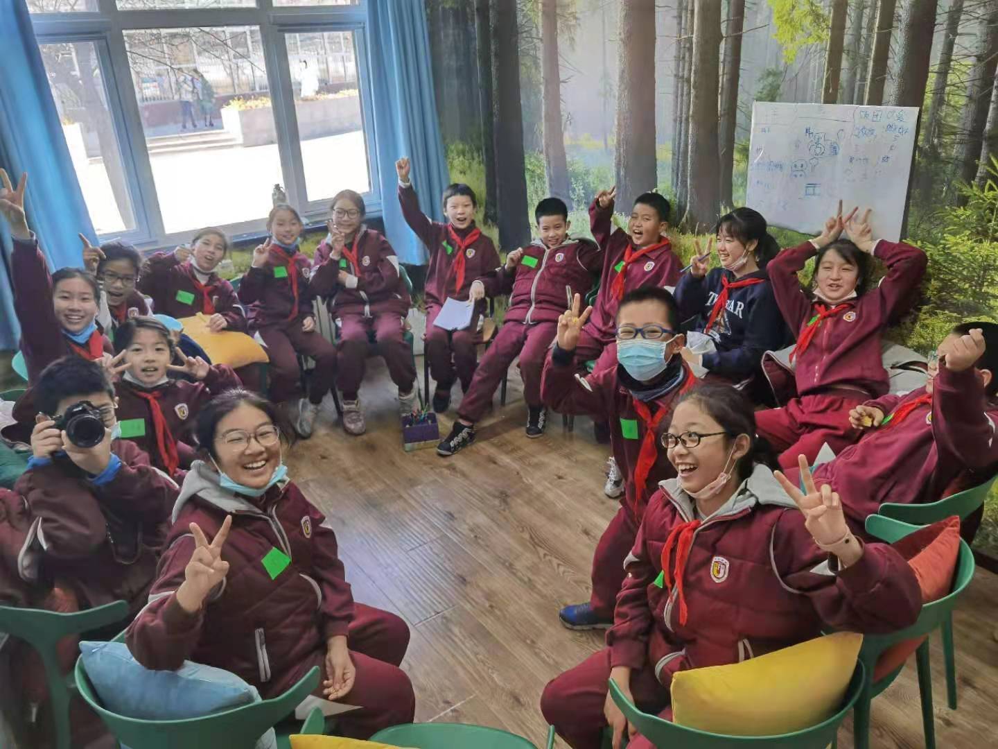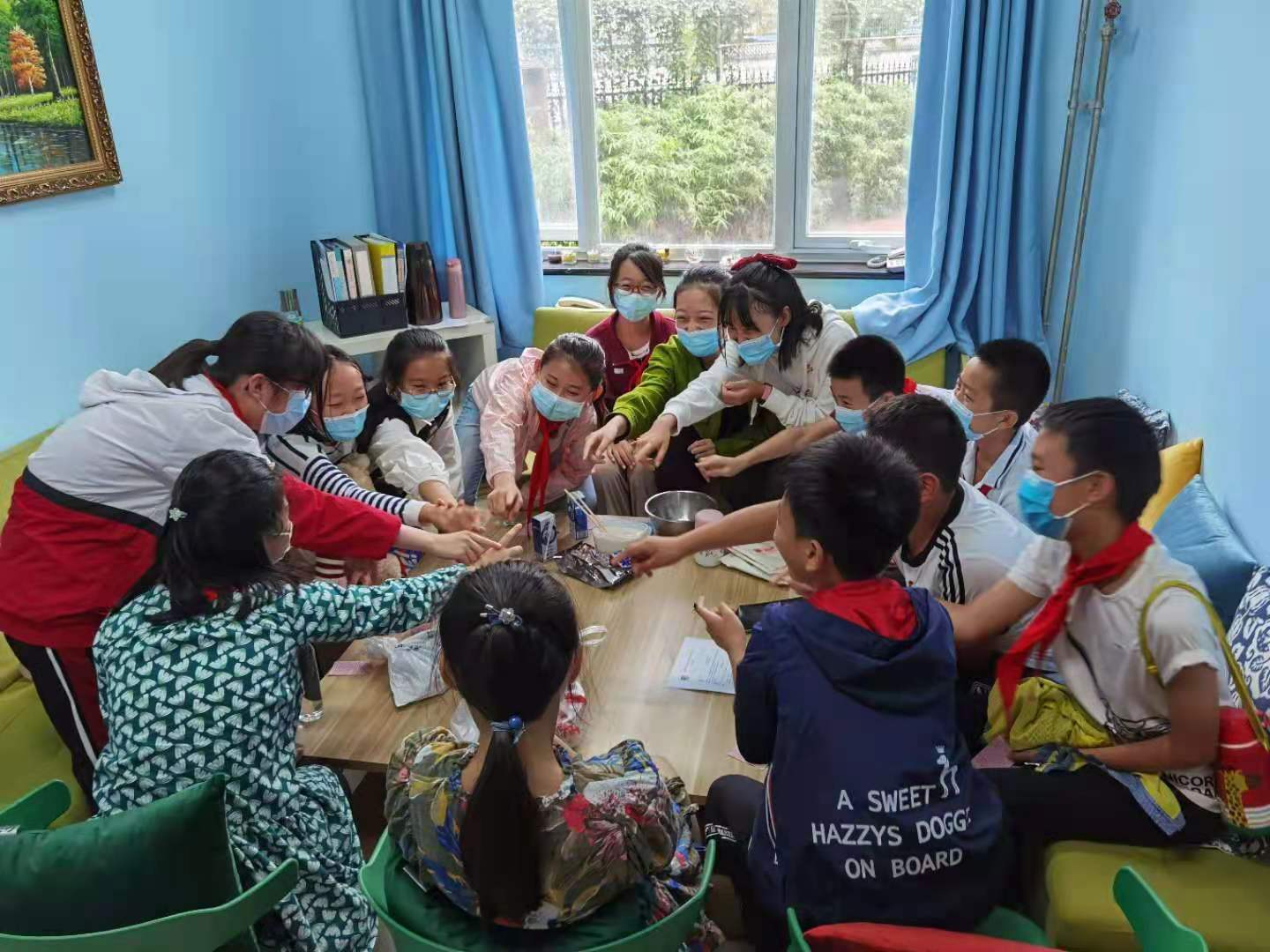 将心理社团工作与红十字人道教育工作、学生心理委员培训、心理健康知识普及、心理危机防控、校园欺凌的预防等工作有机融合。通过心理委员培训及工作会培养学生干部,组织心理委员开展辐射五六年级全年级学生、自主选择的普及性心理活动,使心理委员在学生与班主任、心理老师之间架起心灵沟通的桥梁。 心理委员在班级宣传、招募有情绪、人际困扰和对自我探索感兴趣的学生自愿参加“人际面具你我他”主题团辅活动、“yes and”主题人际互动体验活动、团体沙盘、主题放松冥想、OH卡牌探索、团队拓展等丰富多彩的心理社团活动。
