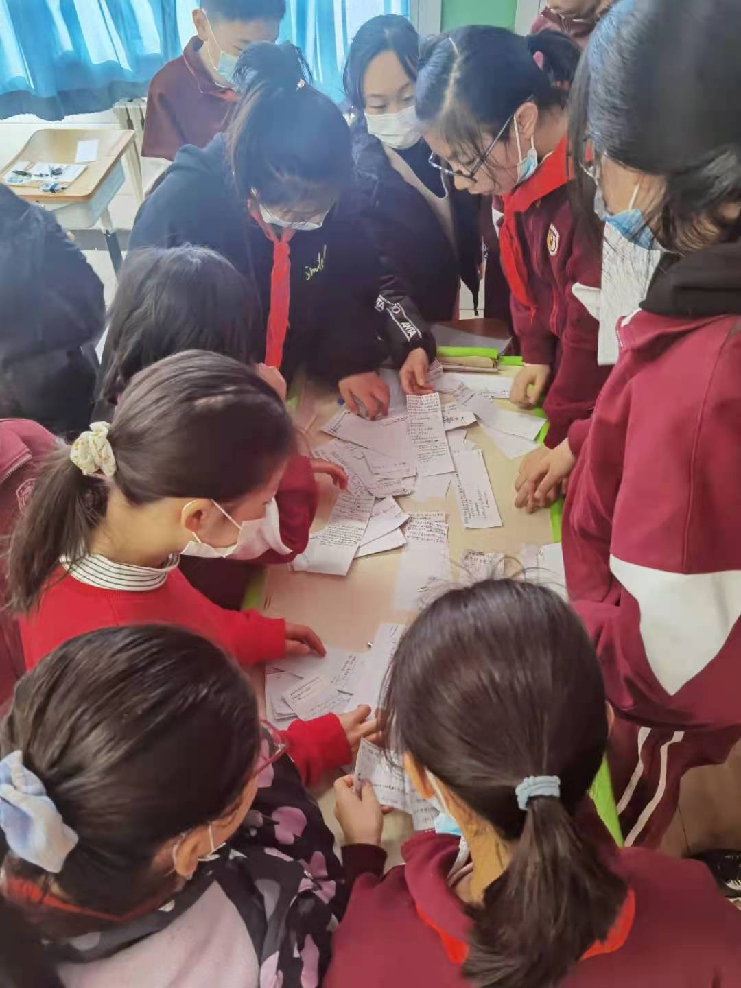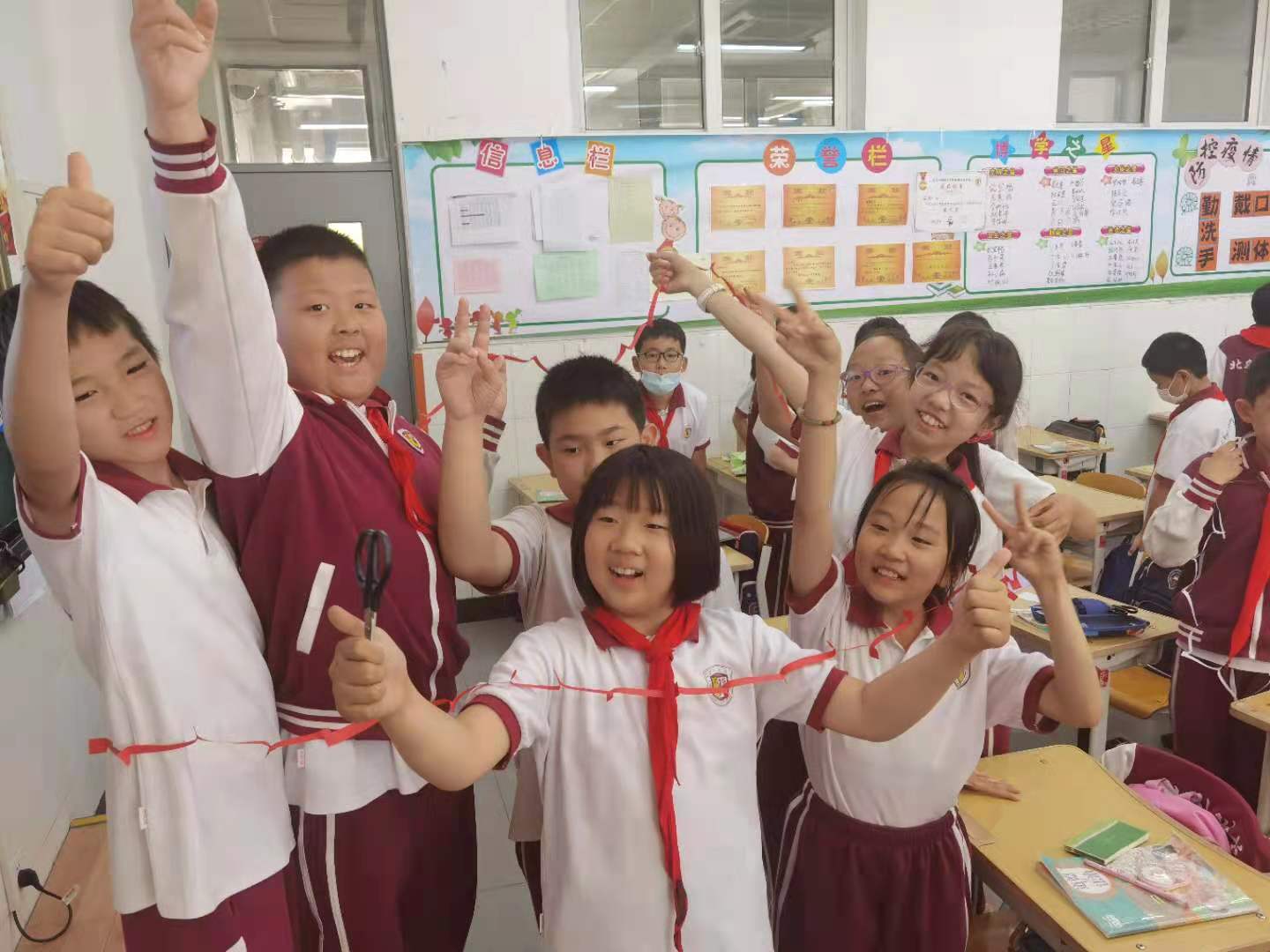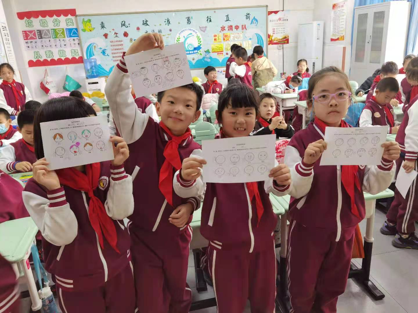 将心理社团工作与红十字人道教育工作、学生心理委员培训、心理健康知识普及、心理危机防控、校园欺凌的预防等工作有机融合。通过心理委员培训及工作会培养学生干部,组织心理委员开展辐射五六年级全年级学生、自主选择的普及性心理活动,使心理委员在学生与班主任、心理老师之间架起心灵沟通的桥梁。 心理委员在班级宣传、招募有情绪、人际困扰和对自我探索感兴趣的学生自愿参加“人际面具你我他”主题团辅活动、“yes and”主题人际互动体验活动、团体沙盘、主题放松冥想、OH卡牌探索、团队拓展等丰富多彩的心理社团活动。