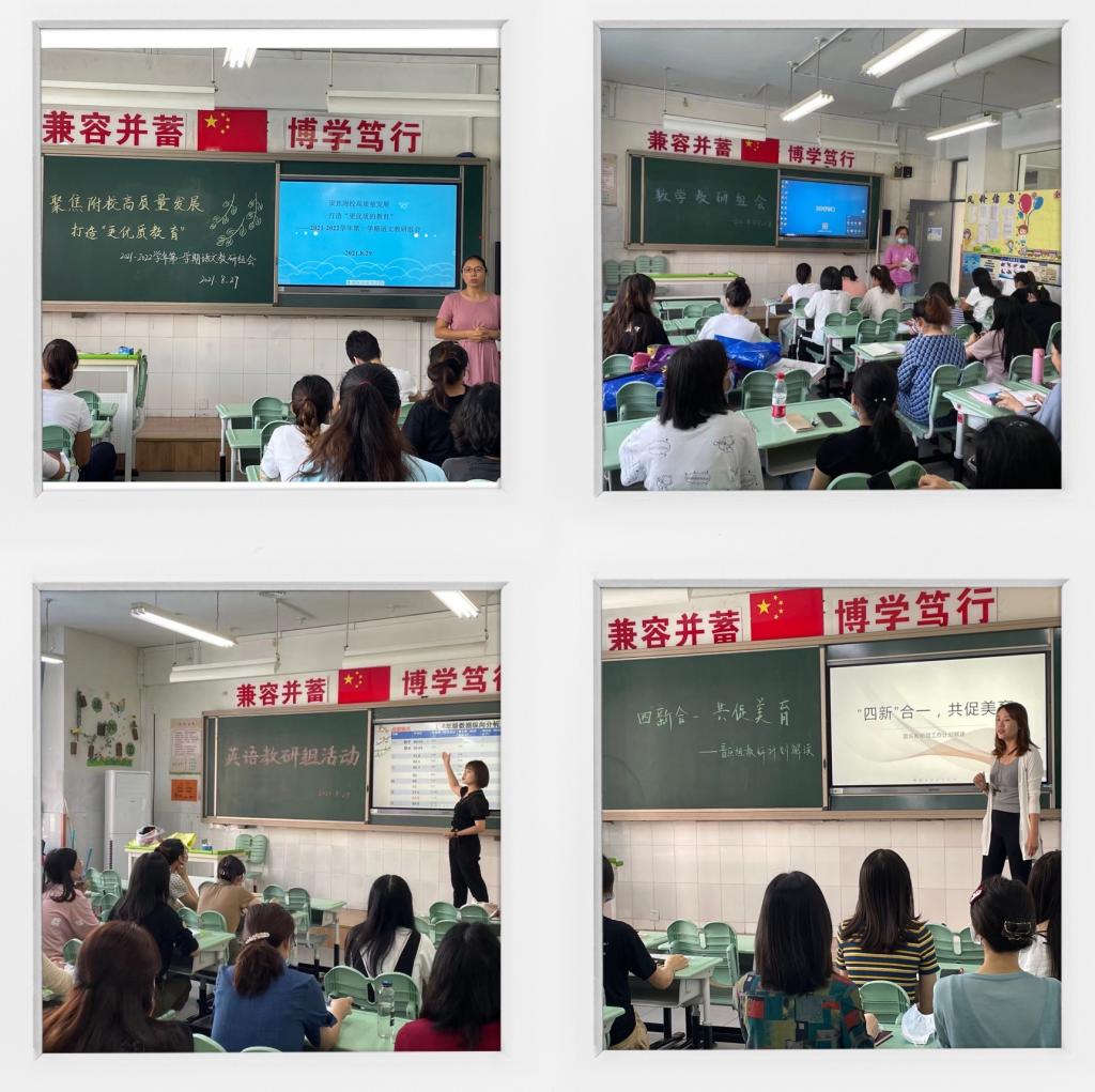 为深入贯彻“双减”精神,落实学校“打造更优质的教育”目标,积极打造各学科品牌特色,8月29日,我校小学各教研组开展了新学期教研活动,结合各学科特点及现状,进行了学业质量分析和新学期工作研讨。