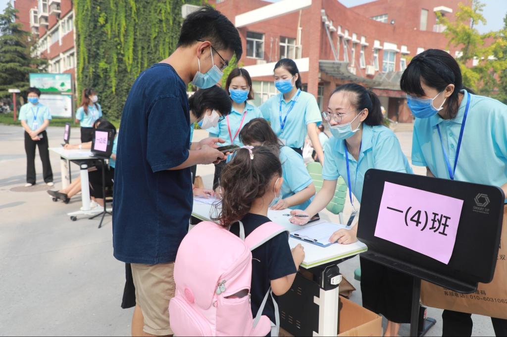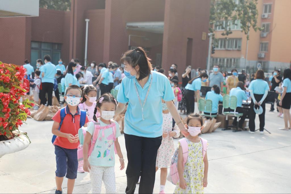 新学期开始疫情尚未结束,学校严格按照防疫要求,在校门口设置好分隔线,引导家长有序排队。各班级按照提前设计、演练好的放学路线和时间点,高效有序放学。