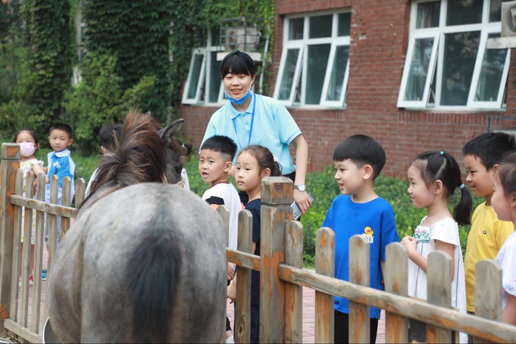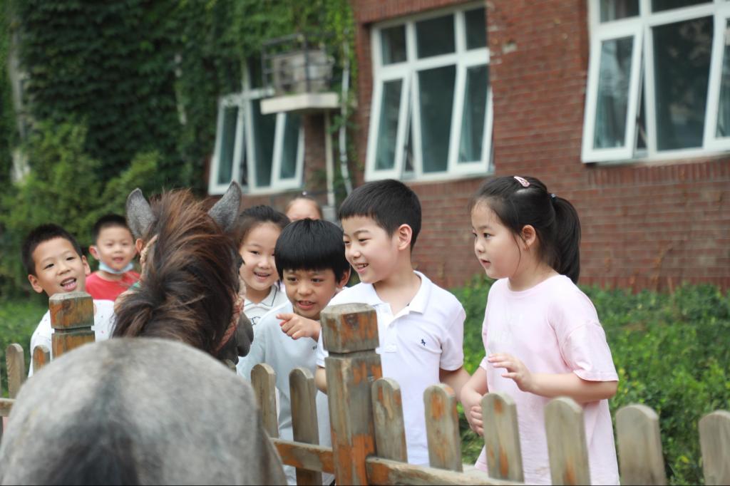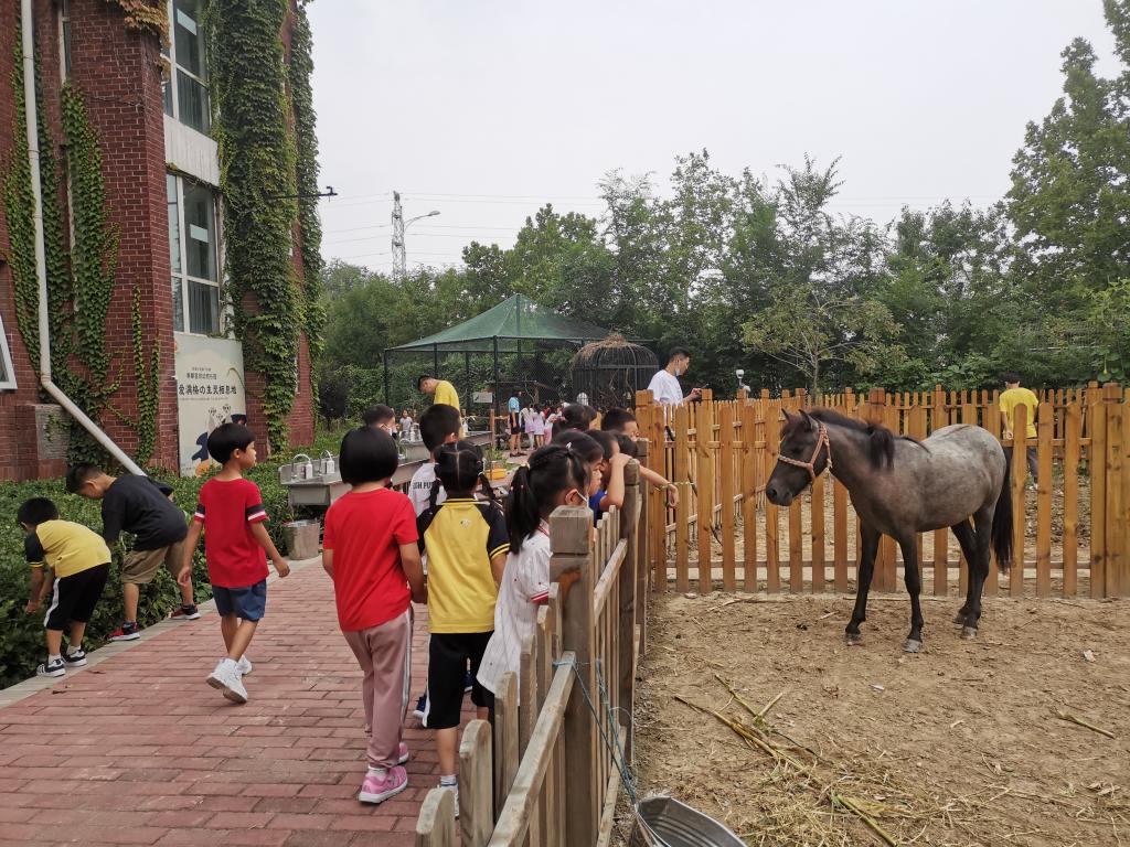 北外附校的田园牧场一直是孩子们心中的乐园,参观田园牧场是孩子们最喜欢的一个环节。这节课老师们精心设计了每个班级的参观时间和路线,以确保十个班级的孩子能够安全有序参观。在参观之前,老师们先在班级播放田园牧场小动物们的照片,鸸鹋,小矮马和蓝孔雀等等,每一种动物都能引来孩子们的热烈欢呼,整个参观过程孩子们都兴致盎然,他们热爱自然热爱动物的天性得到尽情释放,整个过程既热烈又秩序井然。除了动物,牧场里学长们种植的西红柿,向日葵等果蔬也让孩子们兴奋不已,在密集吸收课堂知识后,这里的田园绿色和可爱动物能让孩子们减压,吸收新的来自自然的能量。