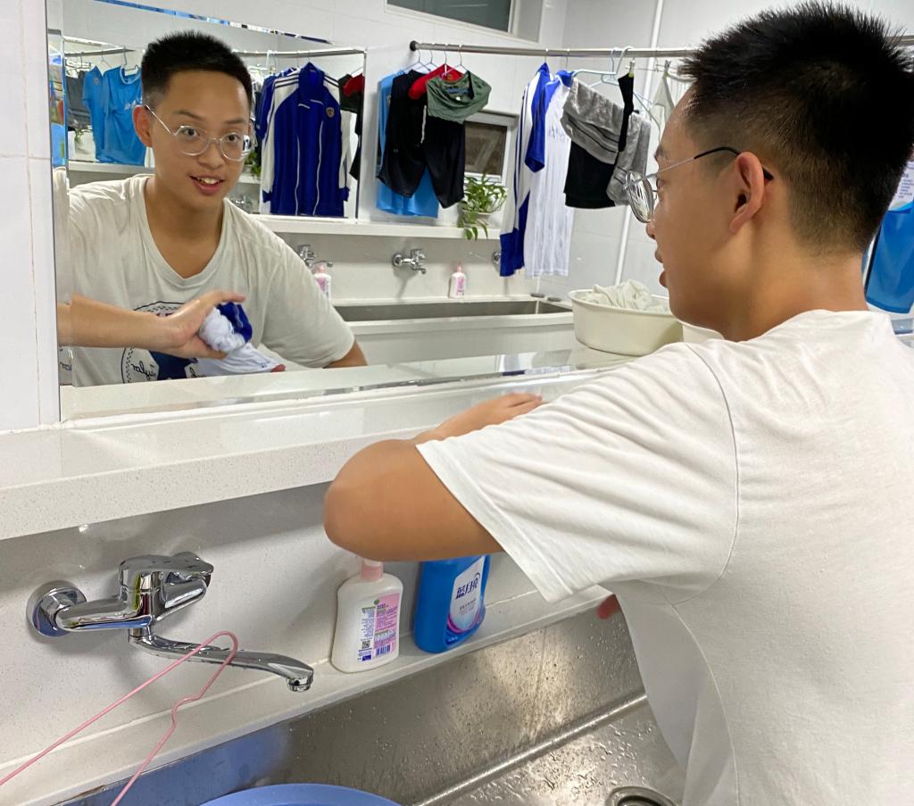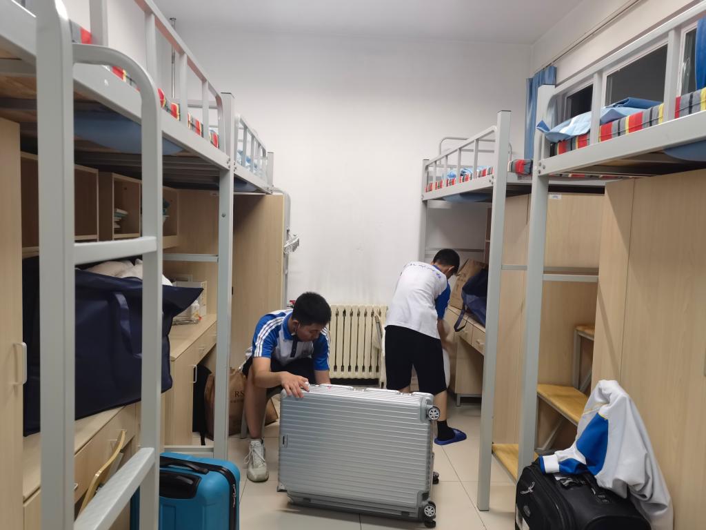 学生回宿舍后,班主任随学生一起去宿舍,关心学生在宿舍整理内务的情况。