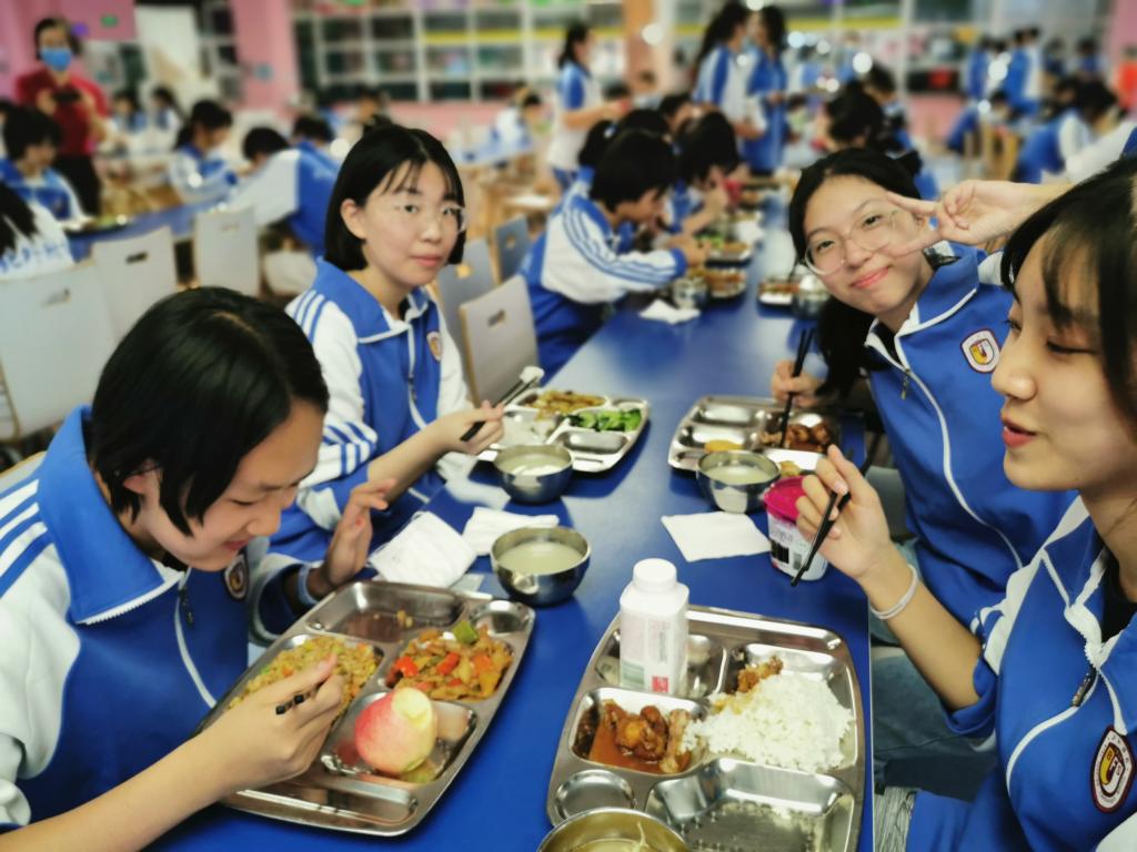 下午5:40,班主任又陪同住宿生去食堂用厅,并拍下学生们在学校的第一餐照片,发给了家长,家长看到自己的孩子都非常开心 。