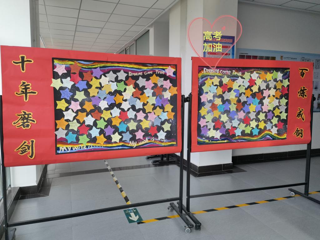 伴随着振奋精神的音乐,同学们纷纷在心形心愿卡上郑重的写下对自己高三的期望,并有序上台粘贴到以浩瀚星空为背景的心愿墙上,寓意着同学们既要怀揣仰望星空的憧憬,也要付出脚踏实地的努力。