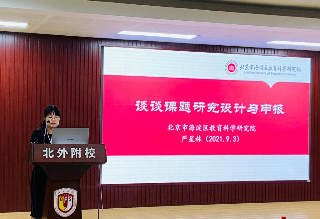为助力 “十四五”课题申报工作,2021年9月3日下午,我校初中校区特邀海淀区教育科学研究院教育科研管理研究所所长严星林为我校教师进行主题为“谈谈课题研究设计与申报”的专题讲座。会议由初中教导处副主任张丽君主持。我校副校长、初中校长杨磊及全体初中教师参会。