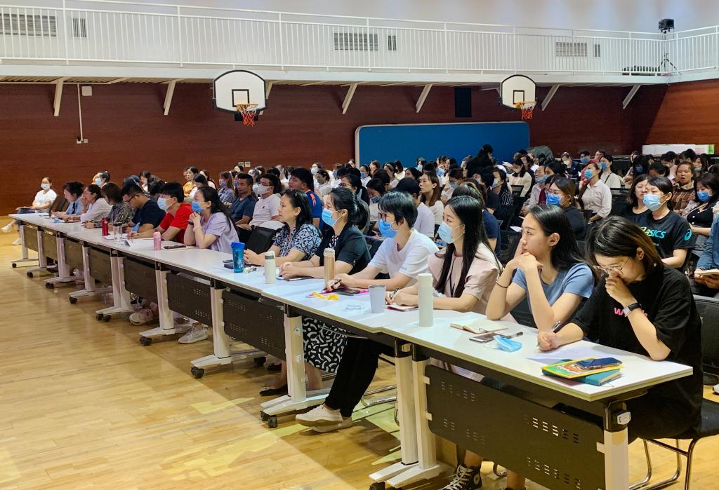 新的学年在贯彻落实国家“双减”政策的背景下拉开帷幕,如何真正做到基础教育的核心重点聚焦校园,使义务教育阶段学生课业负担和校外培训负担显著减轻,本学期我校学科教研和学科特色建设将着力提升课堂质量,打造更加优质的教育。9月3日下午,我校小学举行题为“聚焦学科特色引领,助力高质量课程建设”的全体教师会,各学科教研组长就新学期教研计划及学科特色建设进行了深入解读。我校校长林卫民,党总支书记、小学校长张继军以及小学全体教师参加会议,会议由小学副校长宋花磊主持。