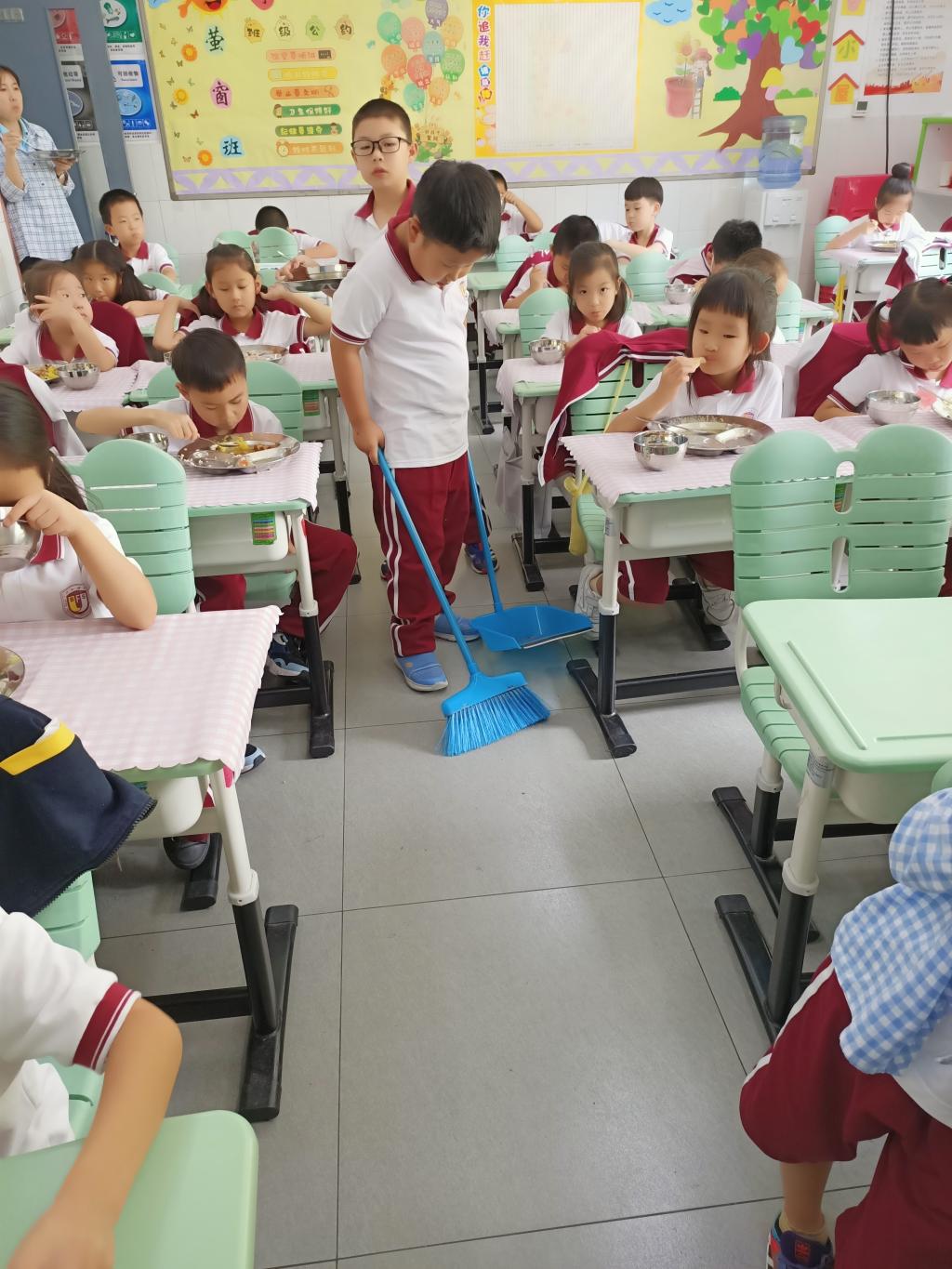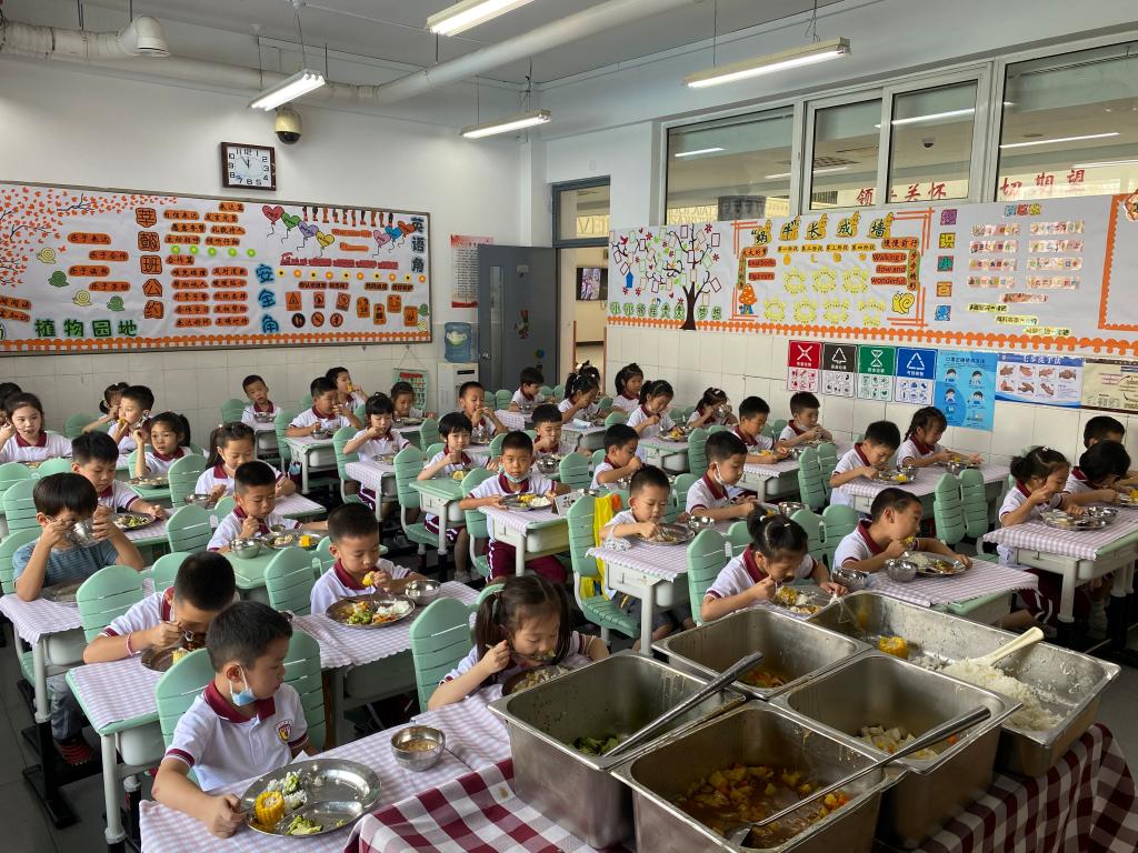 期待的午餐时间到啦!试学当天,我们在班主任、副班主任老师的耐心示范下学会了如何排队、端餐盒、安静就餐等一系列就餐礼仪。聪明的我们马上就理解掌握了这些内容,整理好桌面排好队伍,安静洗手。回到教室食堂的叔叔阿姨早已将丰盛的午餐送到了我们的教室,大家有序地排队取餐,午餐有红烧肉、大虾、花菜、和玉米粒等等真是让我们胃口大开,大部分的小朋友都做到了光盘。