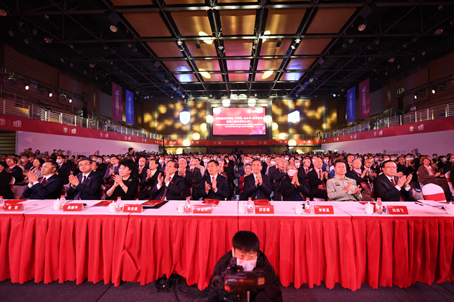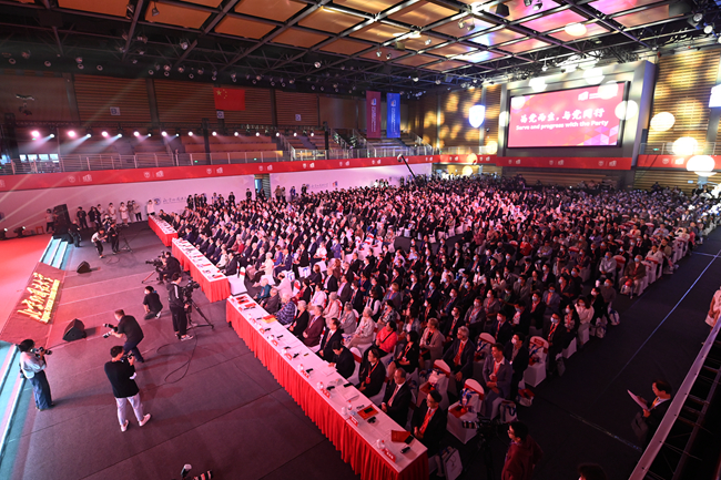 庆祝大会在全场齐唱国歌中正式开始。