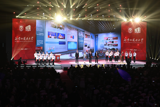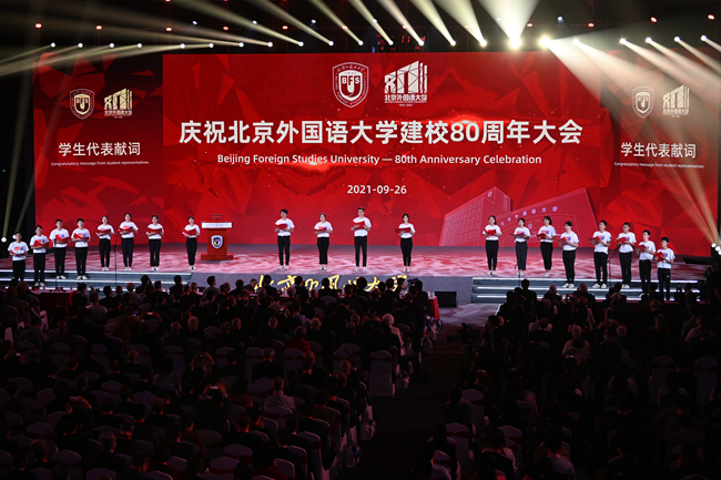 八十载育人桃李天下,正青春北外再启征程。北外生于民族救亡的烽火,成于新中国创业的磨砺,兴于改革开放的春天,也将盛于中华民族伟大复兴的新时代。举棹扬帆,长歌奋进,北外将以人才强校、学术兴校、全球立校战略为引领,加快建设世界一流外国语大学。北外将以自己的战略思考和有力行动,在推动构建人类命运共同体的进程中发出北外声音,更好地把世界介绍给中国,把中国介绍给世界,谱写文明交流互鉴的北外华章!