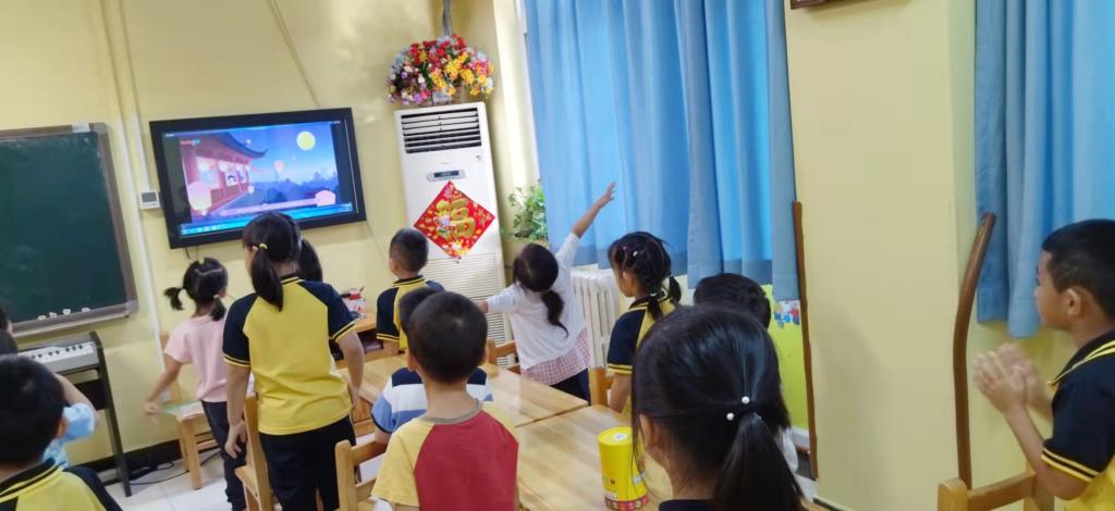 “八月十五月儿圆,爷爷为我打月饼”,又大又香甜的月饼是中秋节必不可少的传统美食之一。圆圆的月饼就像天上的满月一样,象征着大团圆。“Moon cakes are round. Family is eating all around.”旋律优美的英文儿歌从孩子们的嘴里轻轻飘出,寄托着他们对未来生活的美好期待。