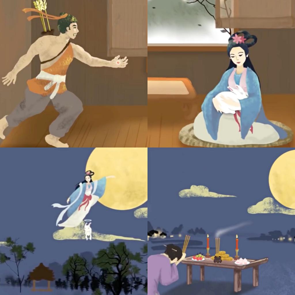 中秋节是怎么来的呢?在老师的引领下,孩子们观看了嫦娥奔月的英文故事。通过老师绘声绘色的讲解,孩子们认识了嫦娥,后裔等中国神话中的著名人物,并了解到了中秋节的起源。视频里活灵活现的人物形象,可爱的玉兔,遥远的月宫,引人入胜的故事情节,灿烂的华夏文明,让小可爱们聚精会神,沉浸其中。