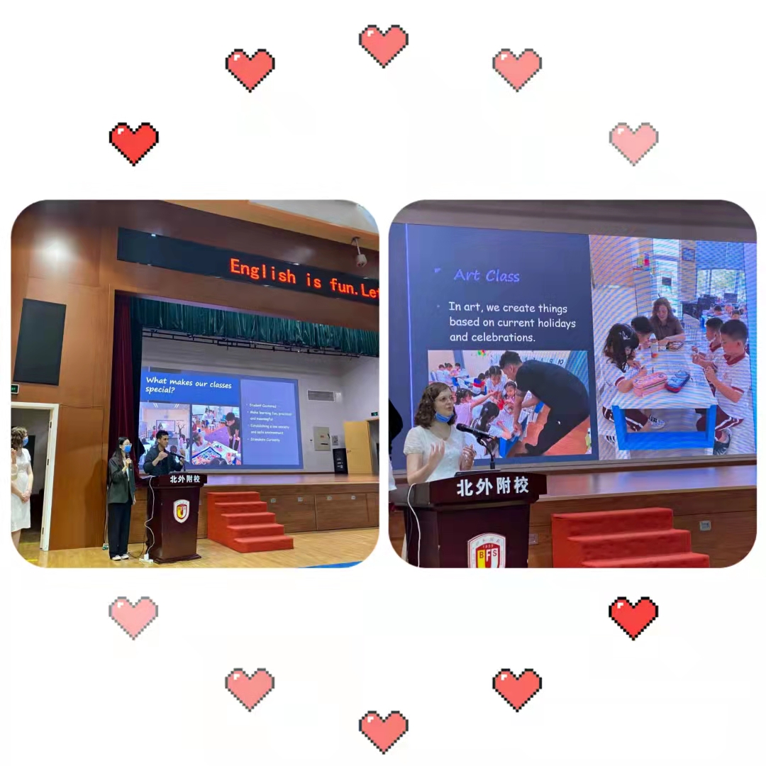 外籍教师Mark和Jayden也对高端英语项目课程进行了介绍。他们阐述了自己的教育理念,强调学生的主体地位以及轻松舒适的课堂氛围的重要性,然后对课程的两大支撑部分——语言素养课和融合课进行了全面、细致的解读。Mark和Jayden老师向家长们介绍了如何根据孩子们的不同基础进行分层教学,满足孩子们的不同学习需求,对孩子们开学以来积极主动的课堂表现大为赞赏,并为孩子们的取得的进步感到欣慰。