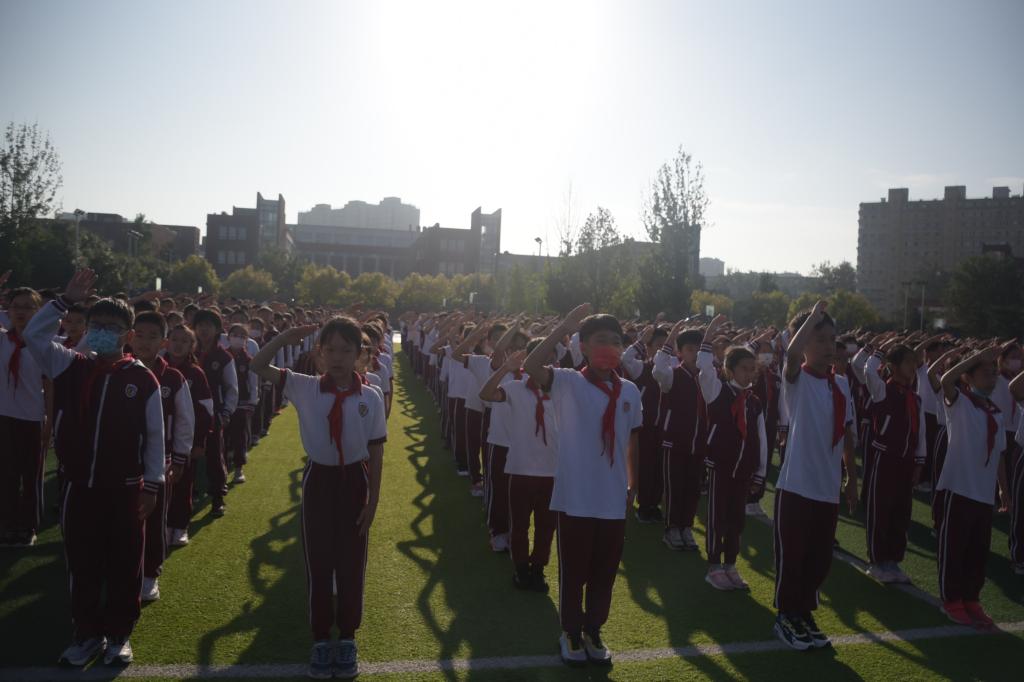 微课堂结束后,全体学生深受感染,再次齐唱国歌,用庄重的队礼和嘹亮的歌声表达了对国旗的尊敬和对祖国的热爱,为即将到来的祖国母亲生日献礼。