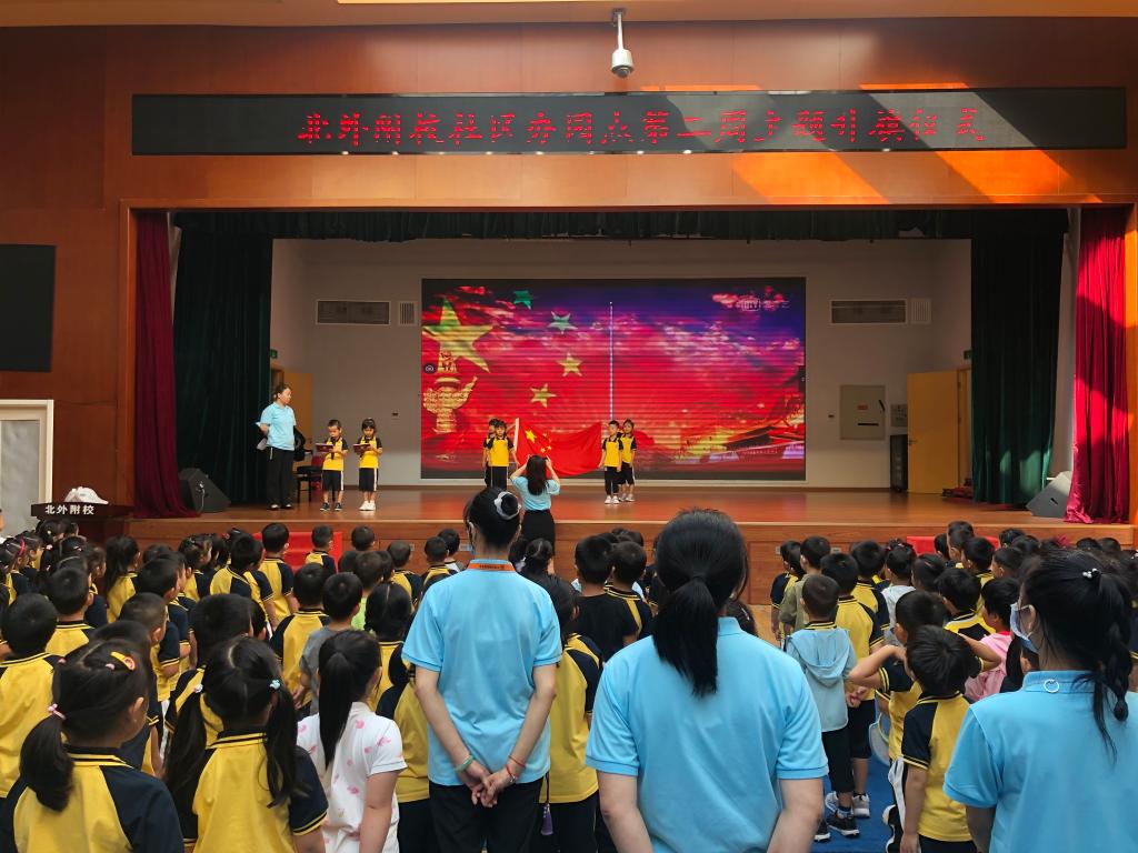 本周升旗仪式的主题是“爱上幼儿园”。满载着喜悦和祝福,怀揣着憧憬和理想,我园又迎来了一群新的“小蜜蜂”,他们勤劳优雅、乐观积极,在集体活动中团结合作,无私奉献。为了欢迎小朋友们的到来,大(10)班的小朋友们为大家带来了一首儿歌表演《欢迎歌》,希望所有的小朋友们都能爱上幼儿园。