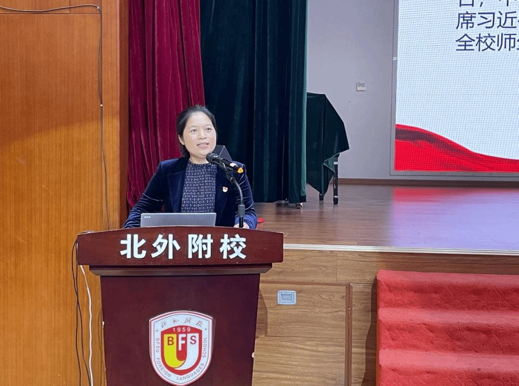 张继军进行总结发言。她指出,习近平总书记的重要回信对北外80年来的办学成就给予充分肯定,作为北外人我们倍感自豪。希望老师们以学习贯彻落实习近平总书记重要回信精神为契机,发扬勤奋踏实,团结奋进,追求卓越的良好作风,不断提升专业素养,提高育人水平,履行好作为北外教师的光荣职责,为打造更优质的教育,为培养具有国际视野和家国情怀的接班人而努力奋斗。
