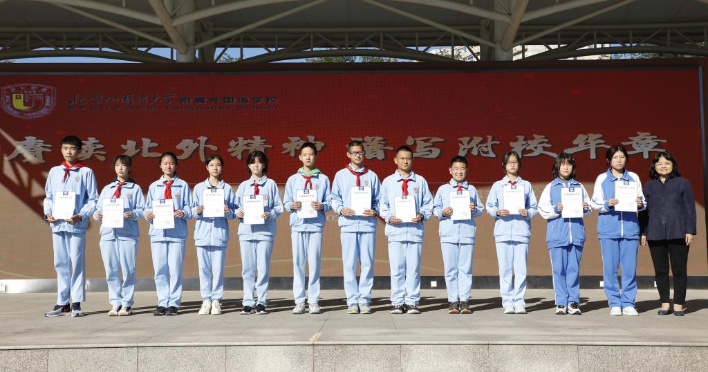 在2020-2021年度“我的冬奥梦”冬奥小记者征选活动中,王梓羲、王星博、郭世龙、陈帝铻、尹慧萱、梅家伊、任俊飞、赵凯琪、张益豪、刘舒心、丁旸、周雨歆、吴柯菲同学表现优异,获得了北京市“冬奥小记者”荣誉称号。于苒副校长为以上获奖同学颁奖。