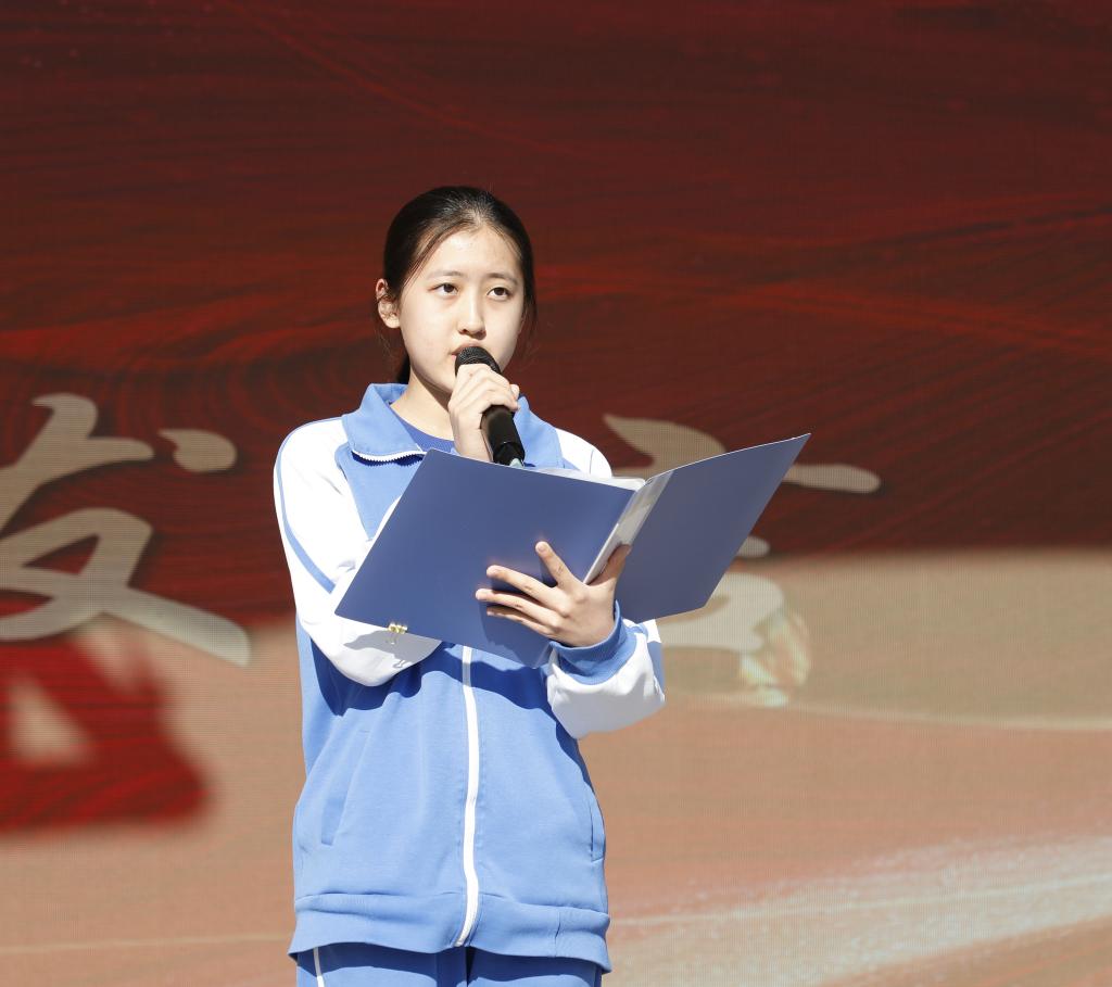 校庆主题仪式在嘹亮的国歌声中拉开帷幕。在国旗下,北外附校往日芳华的缔造者,已经毕业的张晋雄大使和翟梓西学姐为母校的寿诞发出诚挚的祝福,并对学校的未来报以殷切的期望。仪式第三项,学生代表高二(1)班李南熹国旗下演讲,感谢多年来附校的培育。
