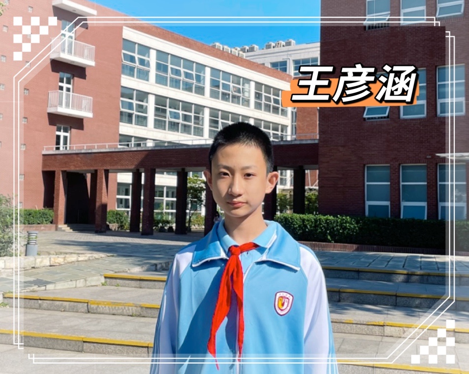 王彦涵同学在七(5)中队中担任中队委,他乐于助人,热爱集体,学习刻苦认真,从不懈怠。在少先队集体中曾荣获“优秀少先队员”、“学习之星”等称号。他积极响应少先队的号召,踊跃参加各项少先队活动,从为贫困山区捐款到响应环保行动录制宣传片,从组织小队参观“王选院士展”到体验军营生活,各项活动样样不落。同时,他热爱科学与实验,2021年获得北京市“迎春杯”数学竞赛一等奖、“华罗庚杯”数学竞赛二等奖等。