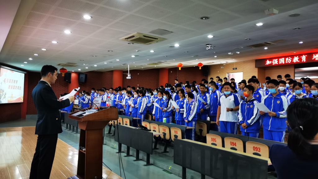 为了进一步加强学生的国防教育,增强学生的国防观念,我校高中于10月15日在第二阶梯教室组织开展了国防教育主题活动,高一年级全体师生参加了本次活动。