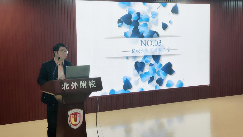 最后,杨磊要求全体教师认真贯彻落实“双减”政策要求,向学生明确“作业是学习的重要环节”,要求学生认真对待作业,指出应注重“结构化”“抓落实”,避免教学浮在空中;聚焦课堂提质增效,扎实落实学科核心素养,培养学生的高阶思维能力,提升学生在校的学习效率。