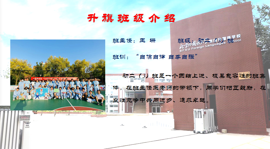 初二(3)班是一个团结上进、极具包容性的班集体,在班主任王老师的带领下,同学们相互鼓励,在良性竞争中共同进步、追求卓越。