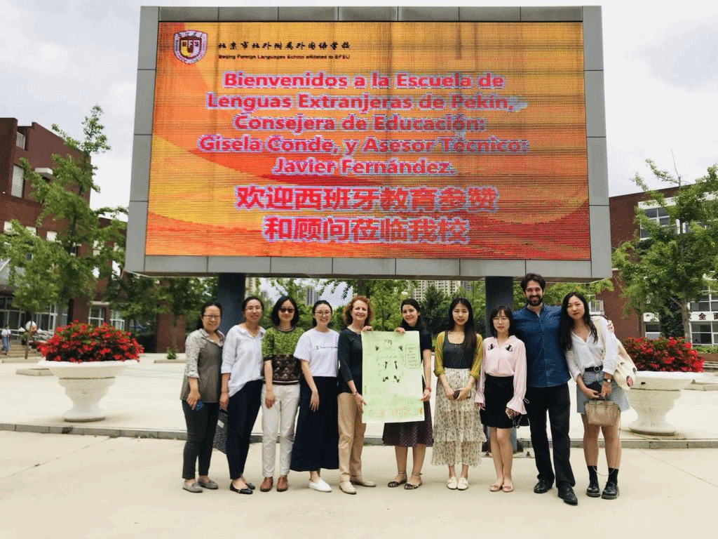 6月13日,西班牙驻华大使馆教育参赞Gisela Conde女士和顾问Javier Fernández先生到访我校,校长林为民和副校长、党委书记张继军及西语组全体教师接待了外宾。