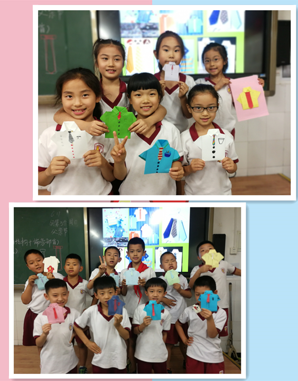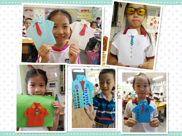 每年六月的第三个星期日是父亲节(Father's Day)。父亲节顾名思义是感恩父亲的节日。很多人都会趁着父亲节向父亲表达敬爱和感恩,今年的父亲节是6月17日,在节日来临之际,我校小学二年级的学生,在美术课上,用自己独特的方式为爸爸设计了一份特殊的礼物——手工衬衫,下面我们来欣赏一下孩子们的作品吧!