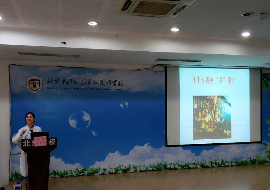 为了让学生了解爱护眼睛的重要性以及在日常生活中应该如何健康用眼,6月15日北外附校邀请北大国际医院眼科主治医师卓彦玲在一层阶梯会议室为小学三年级学生进行了爱眼、护眼、预防近视知识讲座。