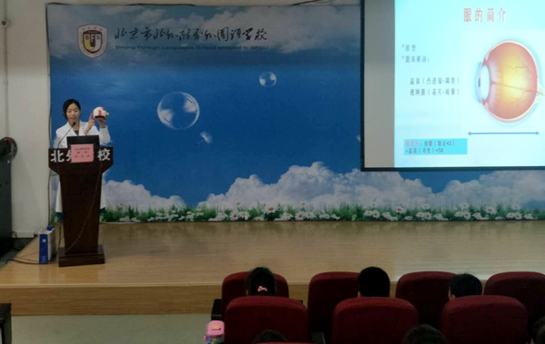 眼睛是我们心灵的窗口,是我们通向美丽世界的桥梁,是获得光明的器官。为进一步增强学生爱眼、护眼的意识和能力,帮助学生们养成科学用眼、护眼的习惯。我校于2018年6月15日,邀请北大国际医院的眼科主治医生卓彦伶为我校三年级学生开展”爱眼、护眼、防近视健康知识讲座”。