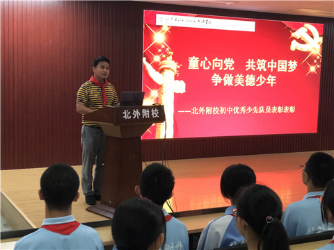 6月1日上午,我校初中在主教楼第二阶梯教室举办“童心向党,共筑中国梦,争做美德少年”庆祝“六一”国际儿童节暨优秀学生表彰大会。大会由初中副校长许祥主持,全体初一年级学生参会。