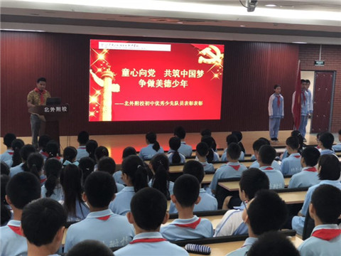 许祥向全体师生祝贺节日快乐并致总结,希望受表彰的的个人珍惜荣誉,再接再厉,切实发挥模范带头作用,争取更大的成绩。希望全体少先队员向优秀小榜样学习,从小学习做人、从小学习立志、从小学习创造,争做社会主义事业的接班人。希望初一年级各中队,建设自主、平等、友爱、向上的队集体,为我校少先队事业作出新的贡献。